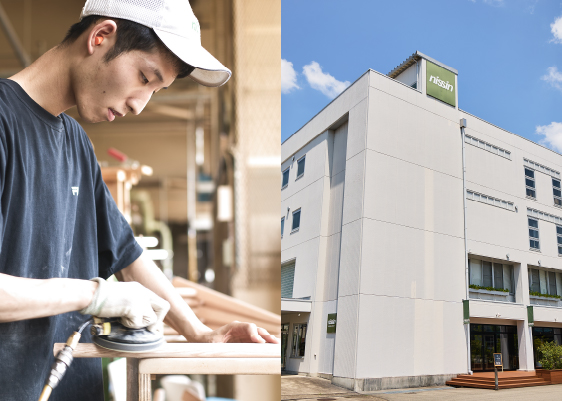 日進木工の製造現場には、ベテランから中堅・若手まで、実にバランスの良い人員が配置されています。これは、家具の産地・高山でものづくりの仕事に携わりたいと考える若者が多く、その志を積極的な採用で受け入れているため。新たな事業のはじまりと、新たな人材の確保で、日進木工は創業100周年に向かって歩みはじめています。